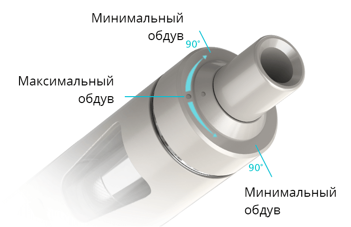 В зависимости от предпочтений пользователя, можно сделать затяжку более свободной, или наоборот более тугой. На верхней крышке (5) (рис.1) и кольце регулировки (5) (рис.1) затяжки находятся отметки. Поток воздуха будет максимальным, когда обе отметки совпадают друг с другом, и будет уменьшаться при повороте вправо или влево.