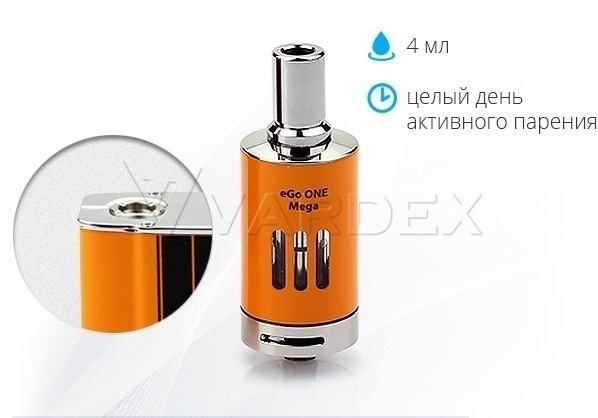 Отдельного упоминания заслуживает базовый набор поставки: помимо собственно батарейного блока, кабелей, силиконового чехла и зарядного устройства в него вошли новый клиромайзер eGo One Mega и комплект испарителей к нему. Емкость встроенного резервуара в данном случае составляет 4 миллилитра — такого запаса смеси с запасом хватит на целый день активного парения! На корпусе расположены специальные окошки, существенно упрощающие контроль за уровнем жидкости. Штатный клиромайзер eVic VT отлично справляется со своими задачами, однако при желании его можно заменить на любую модель с коннектором типа 510.